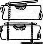 Нарезать крутое яйцо для салата или бутербродов не всегда легко. Для разрезывания яйца на аккуратные ровные дольки очень удобно применять приспособление, состоящее из проволочных нитей (рис. 58).
