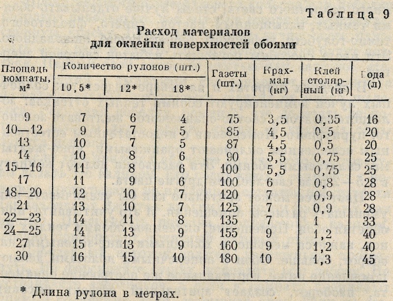 Но вот выбор сделан, и вы хотите определить, какое количество обоев и клея вам нужно приобрести. Ответить на этот вопрос вам поможет таблица 9.