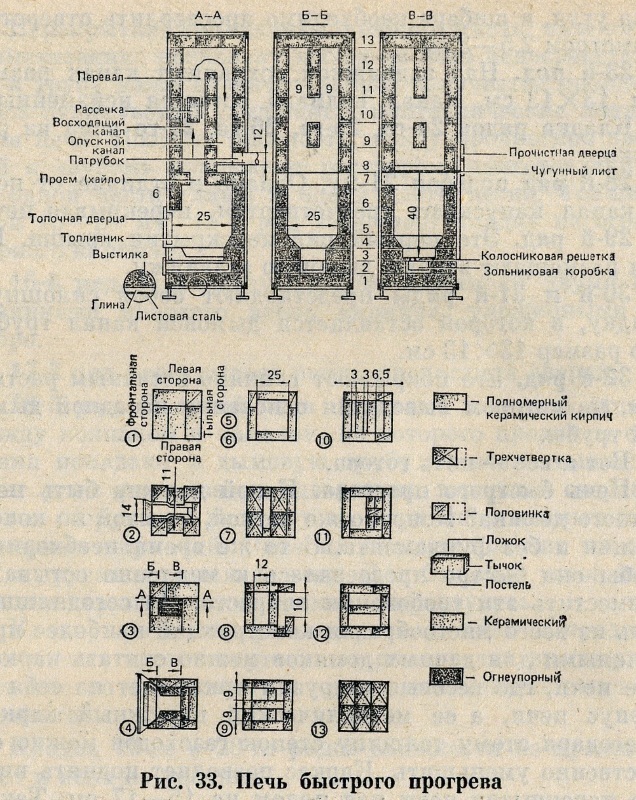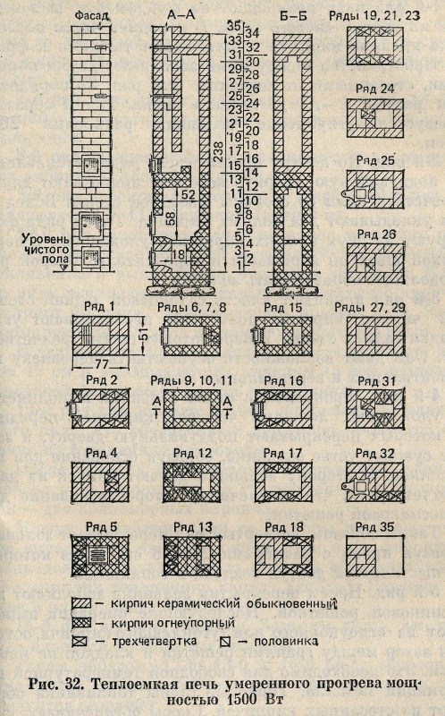 Рассмотрим на конкретном примере, как следует класть кирпичные печи умеренного прогрева.