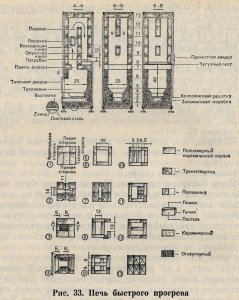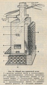 Кирпичная (аккумуляционная) печь умеренного прогрева (рис. 31) работает следующим образом.