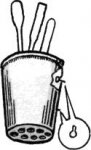 Сменить щетку нетрудно. Положив электрополотер на пол щетками вверх, нужно ослабить отверткой четыре винта держателей щетки. Затем, придерживая одной рукой центральную часть полотера, другой повернуть щетку по часовой стрелке так, чтобы держатели щетки попали на вырезы в ее корпусе. После этого щетка легко снимается (рис. 22).