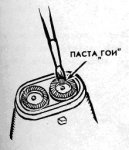 Витки растянутой таким способом спирали будут по всей ее длине отстоять друг от друга на равном расстоянии. Укладывая спираль в бороздку керамики, надо стараться не нарушать равномерности распределения ее витков. Это обеспечит равномерный нагрев и длительную сохранность спирали. Заделка спирали у вводов. Прежде всего надо очистить шкуркой контактные винты вводов, гайки, шайбы и концы спирали от окалины и грязи. После этого подвести к вводу конец спирали, обернуть его по часовой стрелке один раз вокруг винта, обязательно между шайбами, и хорошо затянуть гайку. Свободные концы откусить кусачками или отломать путем многократного перегибания.