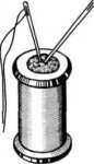 Кусочек поролона, вставленный в отверстие катушки с нитками,— удобное приспособление для временного хранения швейной иглы