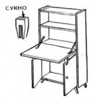 При необходимости откидная доска секретера может с успехом заменить рабочий стол. Однако крепление доски секретера в этом случае целесообразнее усилить этим несложным приспособлением. Когда надобность в столе минует, оно снимается с дверной створки и хранится внутри секретера.