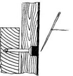 Обычно галстуки подвешивают на шнуре, укрепленном с внутренней стороны дверцы шкафа или кладут в продолговатую коробку. Но, чтобы галстуки хорошо сохранялись и не были мятыми, лучше иметь для них специальную вешалку. Ее можно выпилить лобзиком из тонкой фанеры или из пластмассы. Образец показан на рисунке 64. Можно также в дощечку толщиной 5—6 мм и шириной 6—7 см вбить с двух сторон короткие металлические стержни (гвозди без головок). Подвеска галстуков показана на рисунке 64.