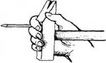 Сплести гамак можно так. Взять две прочные планки длиной 75—80 см и толщиной 3—4 см и просверлить в них, на расстоянии 6—7 см одно от другого, отверстия такого размера, чтобы в них мог пройти шнур, сложенный вдвое.