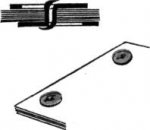 Теперь картон накладывают на фото петлей (или кольцом) наружу и приступают к окантовке. Материалом для окантовки могут служить бумага, коленкор и т. д. Острым ножом по линейке из него вырезают по прямой нитке четыре полоски шириной 1,5—2 см. Длина двух из них должна превышать длину продольной стороны стекла на 2 см. Две другие полоски должны соответствовать длине поперечной стороны стекла.