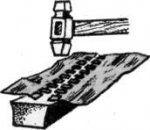 Существует еще удобная модель вешалки для нескольких юбок. Это — легкая, но прочная деревянная доска (можно взять толстую фанеру), которую подвешивают на петлях внутри шкафа — на боковой стенке или с внутренней стороны дверцы. Величина доски зависит от размера шкафа. По обоим краям ввинчивают на некотором расстоянии несколько пар небольших крючков, на которые и надо вешать юбки. Крючок выпиливается и из легкой ткани надо вешать сверху, более плотные—снизу (рис. 59).