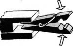 Стальным крючком вяжут изделия из крученых ниток; деревянным, костяным и пластмассовым — из шерсти и некрученой нитки. При покупке крючка нужно обратить внимание, чтобы он был хорошо отшлифован, а бородка не была слишком острой и не царапала палец во время работы.