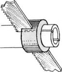 С помощью браслетки с прорезью решается предельно легко не такая уж простая проблема — точно распилить вдоль трубу или круглый стержень. Наденьте браслетку прорезью вверх и, придерживая ее, надпилите трубу. Затем снимите браслетку, вставьте в прорезь пилу, наденьте браслетку, но теперь уже прорезью вниз, и начинайте пилить дальше.