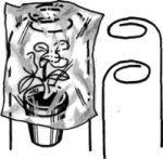 Оригинальную конструкцию для полива придумал В. Смоляков из Смоленска. Из полиэтиленовой пленки он соорудил нечто вроде большого детского воздушного шара удлиненной формы. Наполнив этот аэростат с помощью бытового электротепловентилятора или кондиционера горячим воздухом, он привязал к двум его противоположным концам по капроновой веревке — ими регулируется высота «полета» самоделки. После чего к днищу аэростата (вдоль него) прикрепил полиэтиленовый шланг с проколотыми горячей иглой в нем через равные промежутки отверстиями и плотно закупоренным одним концом. Противоположный конец шланга присоединил к патрубку установленного на земле бытового насоса, качающего воду или раствор удобрений. Это приспособление позволяет умельцу поливать или подкармливать растения в любом уголке участка, причем ему не помеха ни дом, ни сарай, ведь его легко перемещать туда, где в соответствующей работе есть потребность.