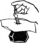 Затем толь, рубероид или пергамент режет на полосы. Ширина их равна длине ребра, а длина — в 2,5 раза больше. Например, если ящик должен быть размером 6 X 6 см, то полосу отрезает шириной 6, а длиной 27 см. Готовую полосу плотно наматывает на фанеру в 2,5 оборота. Затем фанеру выдергивает, полоске придает форму квадратного ящичка. Стыковые стороны толя прокалывает шилом в 2 см от края и скрепляет 0,2— 0,3-миллиметровой медной проволокой. Куски ее длиной 6—7 см можно заготовить заранее.