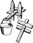 При устройстве дорожек (рис. 10) выкапывают траншею глубиной не менее 15 см с выпуклым дном. Дно траншеи утрамбовывают и засыпают крупным шлаком, щебнем или битым кирпичом. Затем поливают водой и снова утрамбовывают. Сверху насыпают слой мелкого шлака или песка (4—5 см) и еще раз утрамбовывают, поливая водой. Первый слой насыпи можно покрыть тонким (1—2 см) слоем жирной глины, а затем засыпать песок или шлак слоем в 2—3 см и утрамбовать. Это простейшая конструкция дорожки, не требующая устройства бетонного борта по краям,— он может только ухудшить водоотвод.